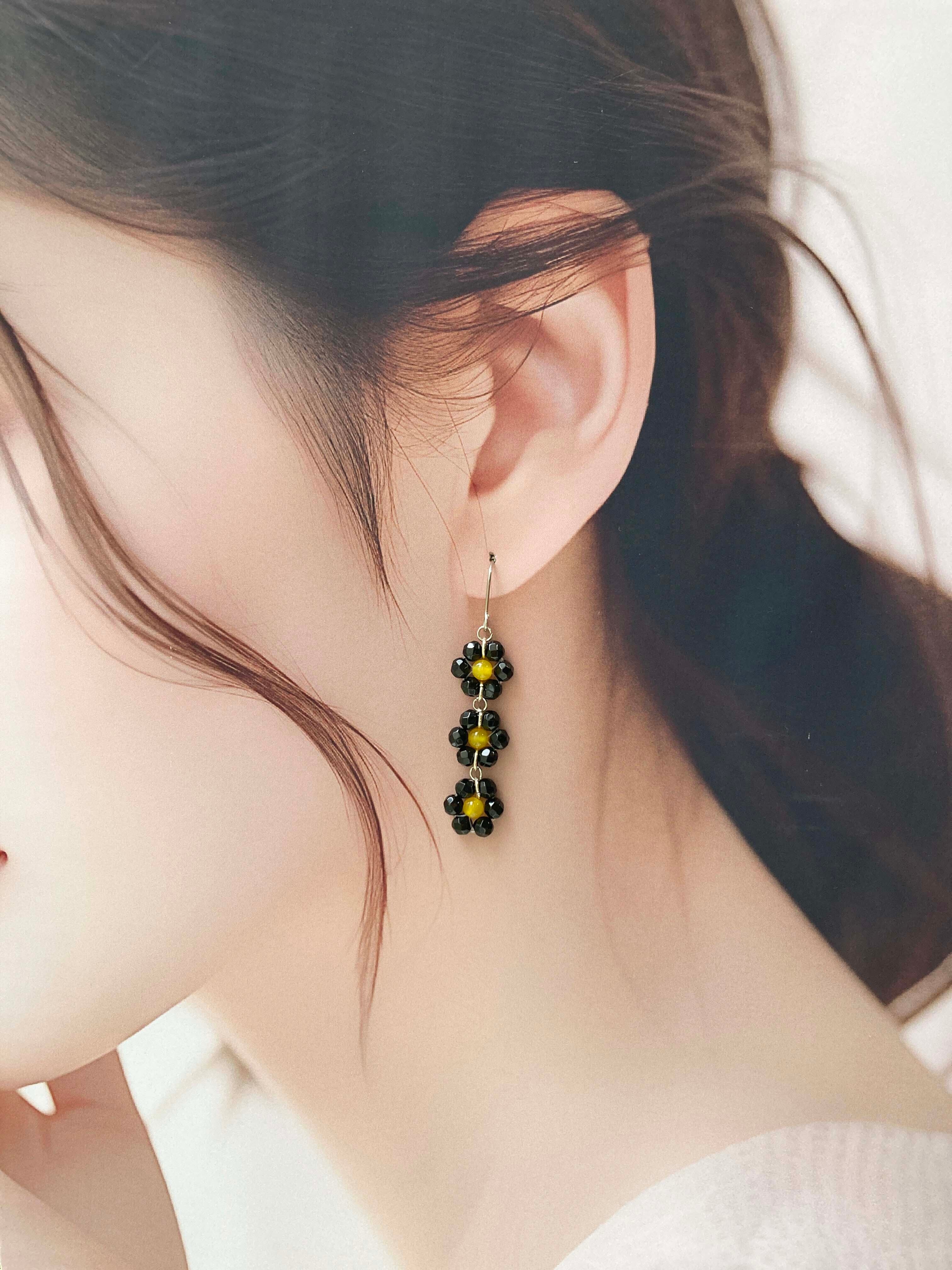 黒を基調とした3連のお花は、ちょっぴりクールで、甘さも忘れないデザイン。